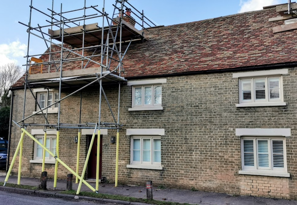 Late C17 with C19 alterations. Timber-framed cased in gault brick. Plain tiled roof, rebuilt red brick ridge stack to left of centre, gable end stack to right hand.
