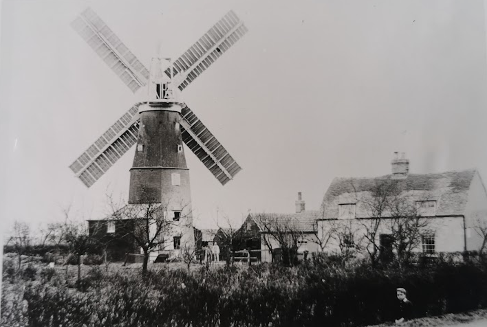 Smock windmill. Early C19. Octagonal, tapering three storey tower of tarred brick with two timber framed storeys above, clad with weather boarding. Ogee cap with ball finial. Four sail stocks and support for fantail in situ. Two stable doors one in lean-to to east, small window in tower. Interior. Mill stones dismantled from over driven corn grinding machinery.