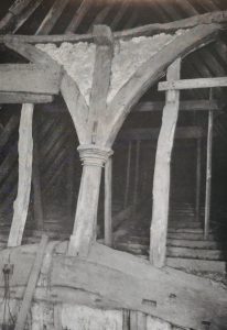 Old Rectory, Kingston 14th cent (RCHM)House, formerly rectory. C12-C13 aisled hall with early mid C14 west crosswing. Alterations of the late C16 or early C17. Timber framed, clunch rubble and dressed clunch. Tiled roofs. T-plan. Aisled hall timber framed with stone outer walls. Tiled roof with C16-C17 brick ridge stack. … The house was probably conveyed to Kings College, Cambridge in 1457. The alterations of C17 may well have been made by Rev. Fogge Newton (d.1612) Provost of Kings and Rector of Kingston. (Historic England)