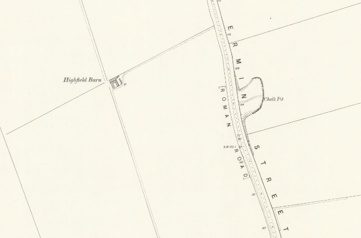 1898 OS map: Chalk Pit and site of Robin Hood tree north of RoystonIn 1923 W M palmer wrote: