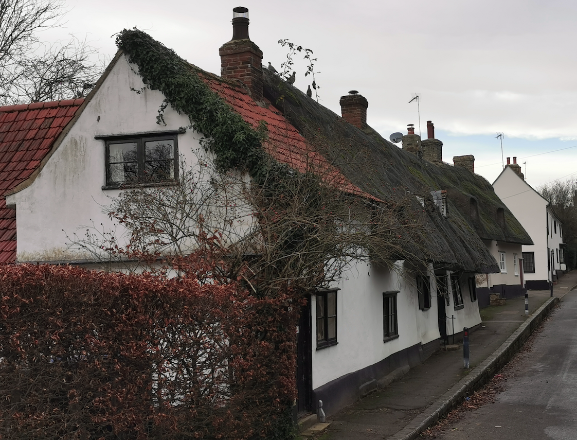 Two cottages; late C16 and early C18 with C19 alterations. Timber-framed and plastered. (Historic England)
