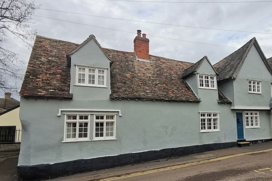 House, formerly two dwellings. C16 or earlier. Timber-framed with plaster render…. Original plasterwork was discovered during recent restoration.