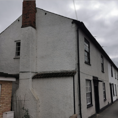 Hall house divided as two dwellings. Early C15 with C17 alterations and additions. Timber-framed and plaster rendered with some original pargetted panels in street elevation, and some exposed timber-frame.