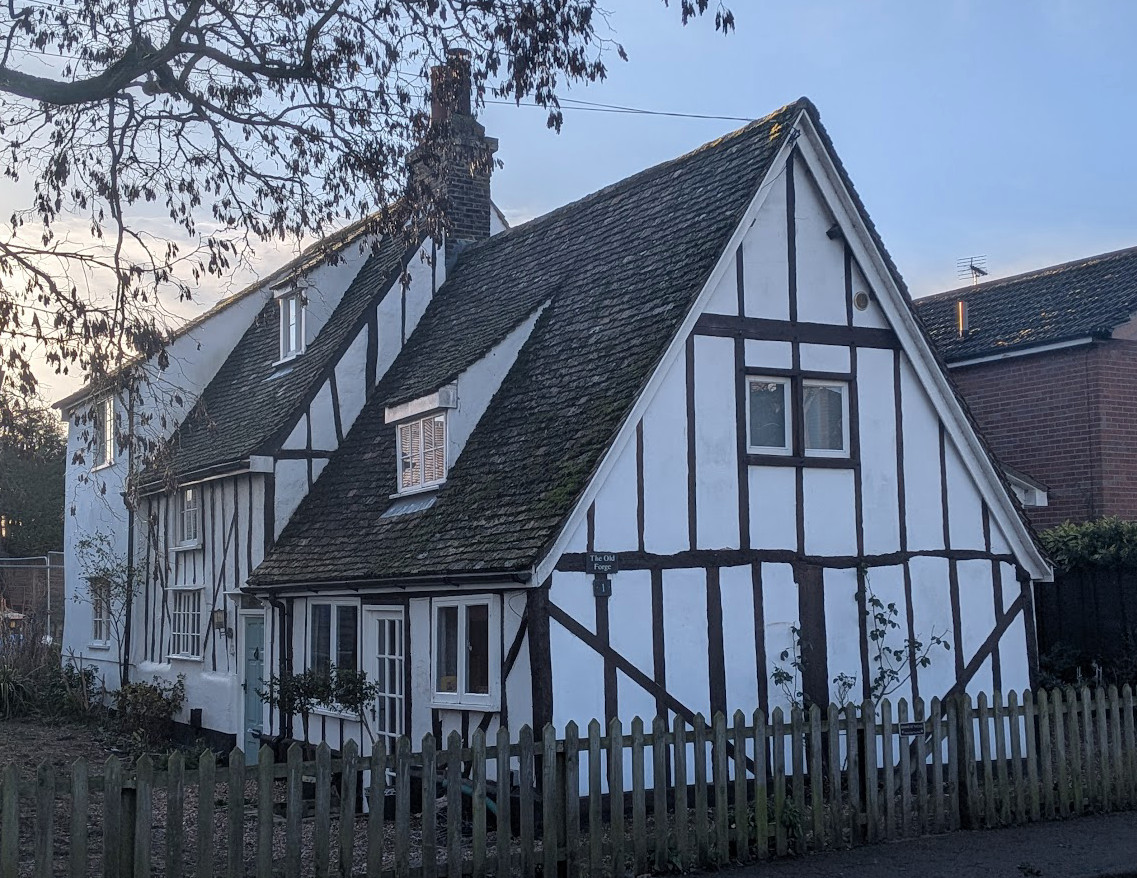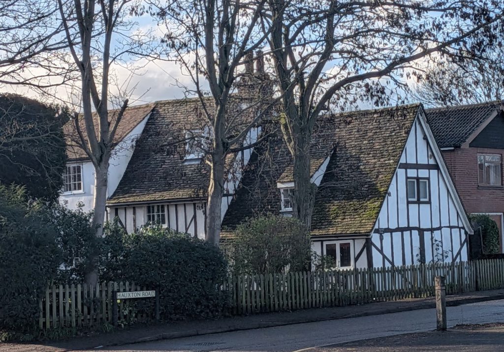 Fanny Wale in Shelford Parva describes at this location ‘in the angle of the road to Hauxton’, a white thatched cottage lived in by Joe Austin, the bricklayer, and son of Thomas Austin who had lived at The Prince Regent.