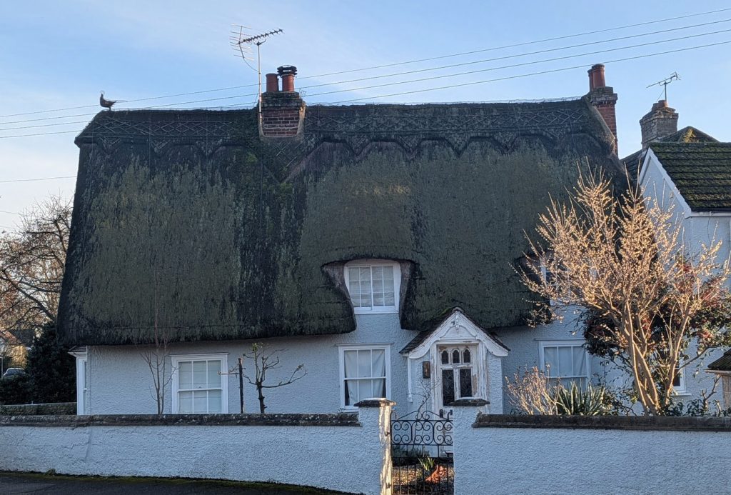 17 Hauxton Road Little Shelford (RGL2026)Fanny Wales in Shelford Parva says: in the bend of the road to Newton, there is a large and picturesque thatched cottage, restored and improved by Frederick Marshall in 1911-12.