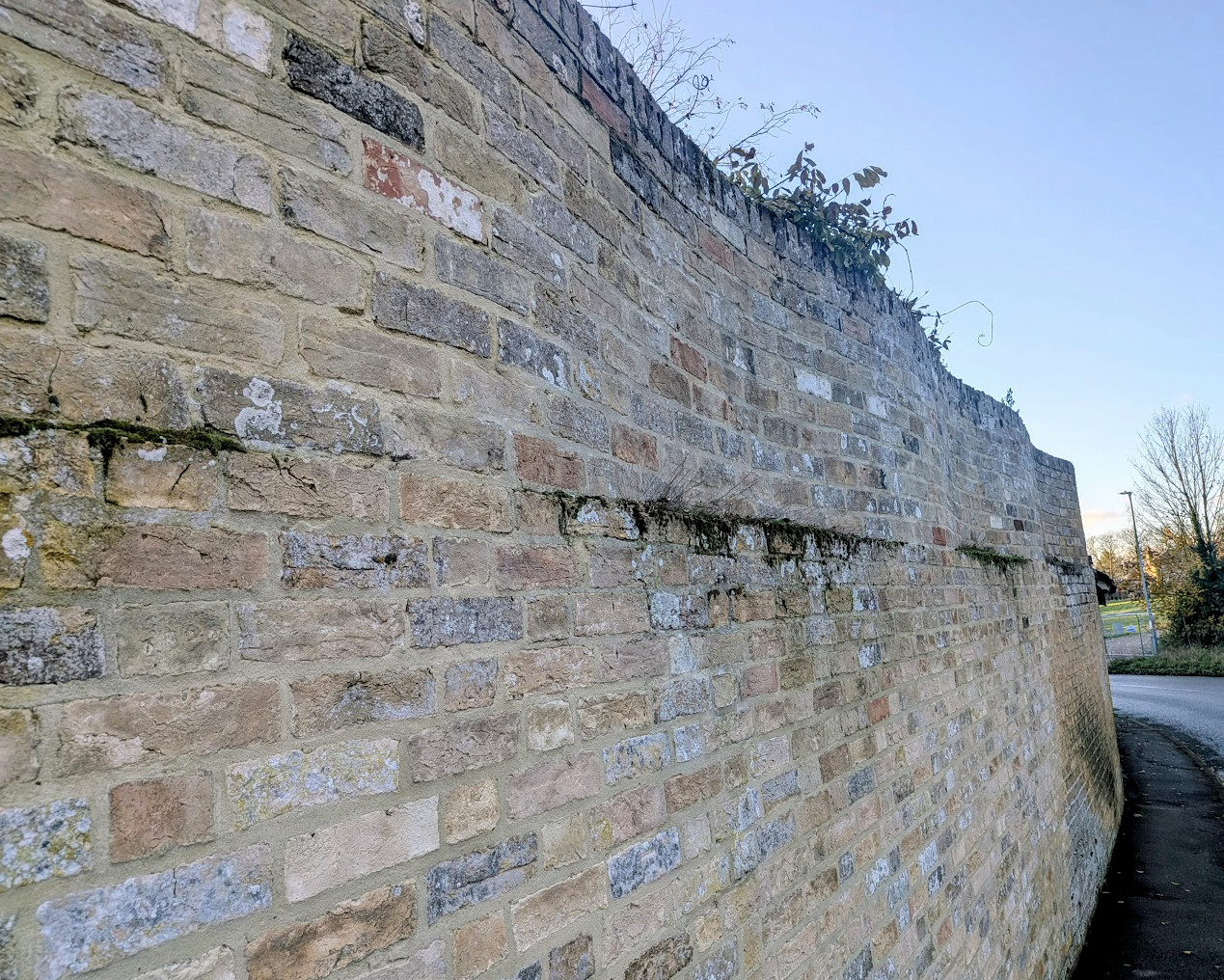 Wall, late C18 or early C19. Grey brick in English bond. Crinkle-crankle of approximately ten undulations.