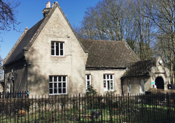 Madingley SchoolSchool and attached school house, now used for play group. 1844, with extension of c1870 and further C20 additions. Gault brick in rat-trap bond with roof of large fish-scale tiles and coped gables and kneelers. Central brick stack with four linked flues set diagonally. Simplified Tudor style. School room is main range with former house as projecting cross wing to left. 3-window range in all of3- and 4-light wooden mullioned and transomed windows with 3-light above to left. Projecting porch to right has shaped gable with datestone and round-arched doorway and door. Large tall window to right end gable. To rear extensions of c1870 and C20. INTERIOR: retains school room with open roof. A little altered village school with unusual roof tiles and brickwork.