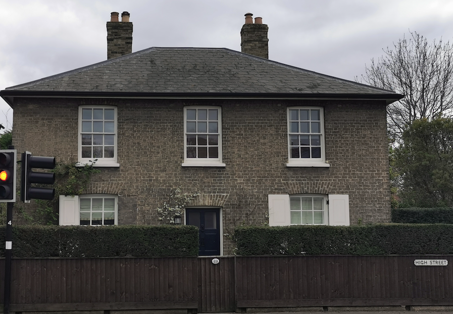 House. c.1840. Grey brick and hipped roof of octagonal slates with symmetrically placed internal stacks.