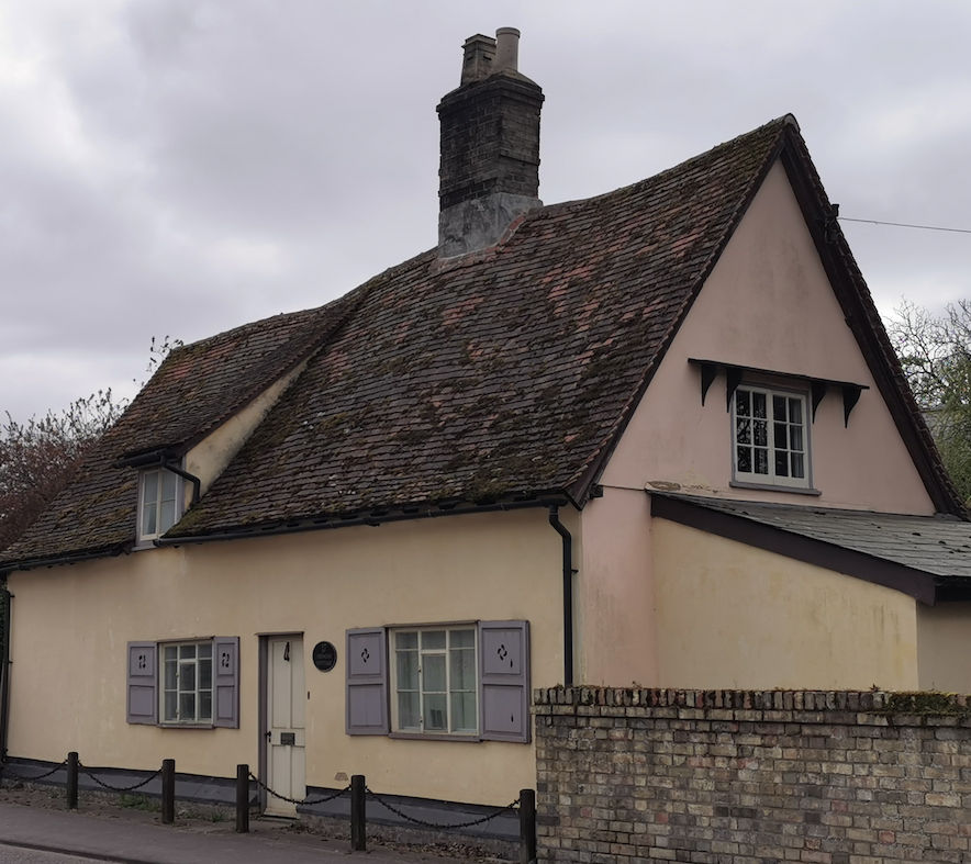 Cottage. C17. Timber framed, roughcast rendered with steeply pitched tiled roof and grey brick ridge stack. Typical three bay and lobby entry plan.