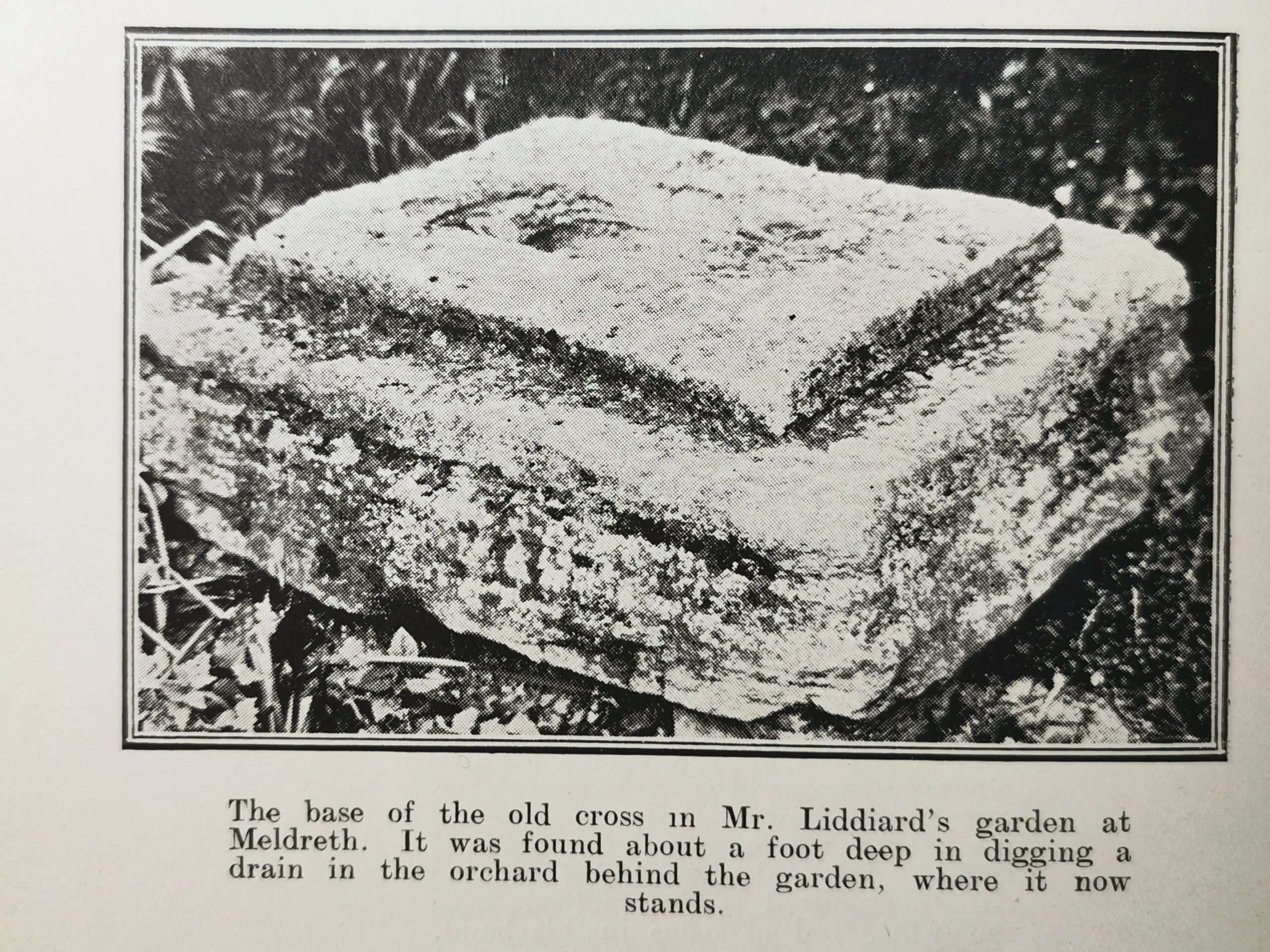 .… in June 1342. two men were travelling from Midsummer Fair at Cambridge to Bedford and they passed through Meldreth…. it was a broad highway as I have shown, but narrow enough to get into quarrelsome near quarters with some of the villagers, particularly with some of the domestics of John de Regges, who owned a part of Veyseys manor and lived i think on the old manor site. Driven up the village towards Kneesworth, one of the tramps, who was armed with bow and arrows began to use them, whereupon there appeared Robert Hales, deputy bailiff of the King’s Hundred of Armingford, with the white rod of office in his hand. He bade them cease fighting, but William de Kirkby, the man with the bow, was a hasty man and shot an arrow into Robert’s belly, threw down his bow and arrows and fled. Robert lived for two months, we may suppose very uncomfortable, and then died, and so we get the record at the coroner’s inquest. I think Robert met the archers by the old manor house and the stocks. And at this site it was I think that the cropss stood, the base of which is now in Mr Liddiard’s garden.