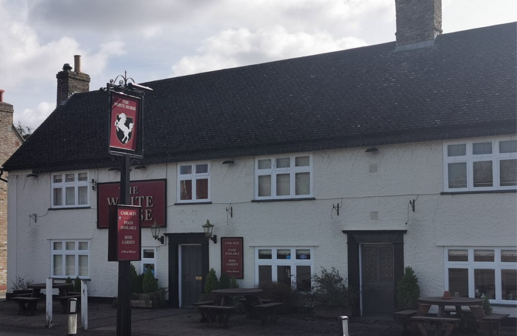 Inn. Late C17. Painted local brick and C19 brick, possibly casing timber frame. Tall local brick ridge stack and C19 stack to south gable.