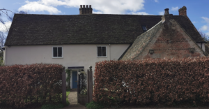 House. C17 with additions c.1768, by William Cole, (1714-1782), Rector of Milton, (1770-82). Extension to north west c.1900. Timber framed and plastered, C18 local brick, reused medieval limestone. Plain tile roofs. ….. brick gable of kitchen wing with carved medieval stones from Archbishop Rotherham’s Gateway (1480-1500) to the Old University Schools and inscription COLE MILTON 1776 HOUSE DEUM.