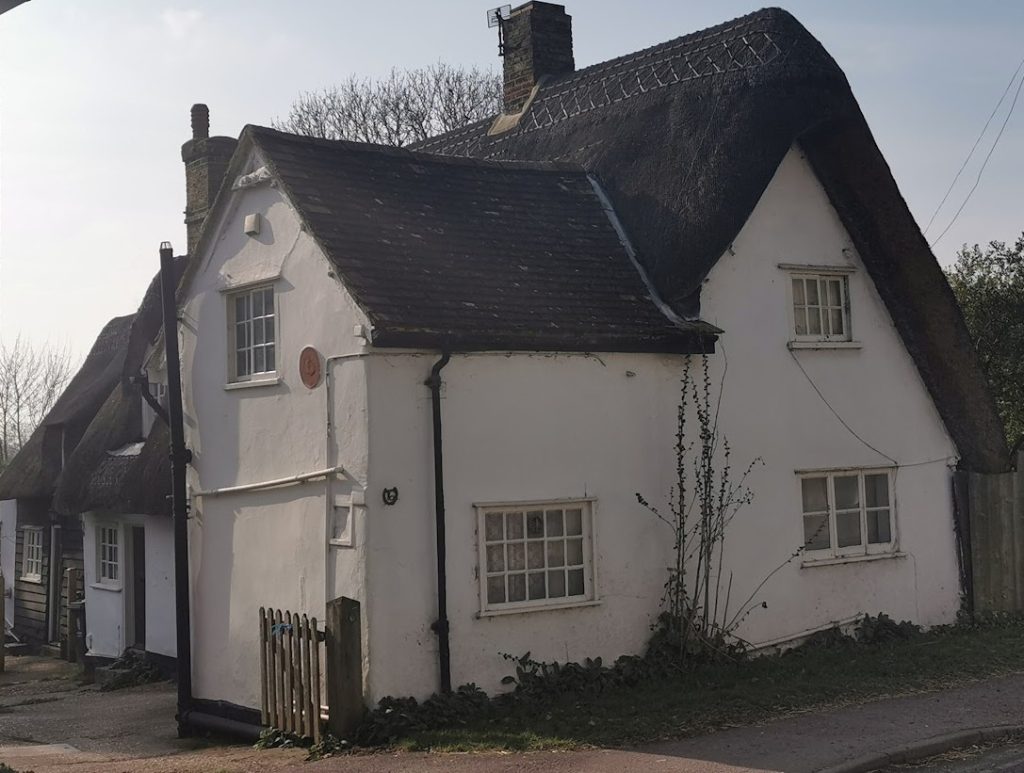 Cottage. C17, extended at south end. … Gable end also has a horizontal sliding sash and a plaque of the Cambridge Cottage Improvement Society who are now the owners. (Historic England)