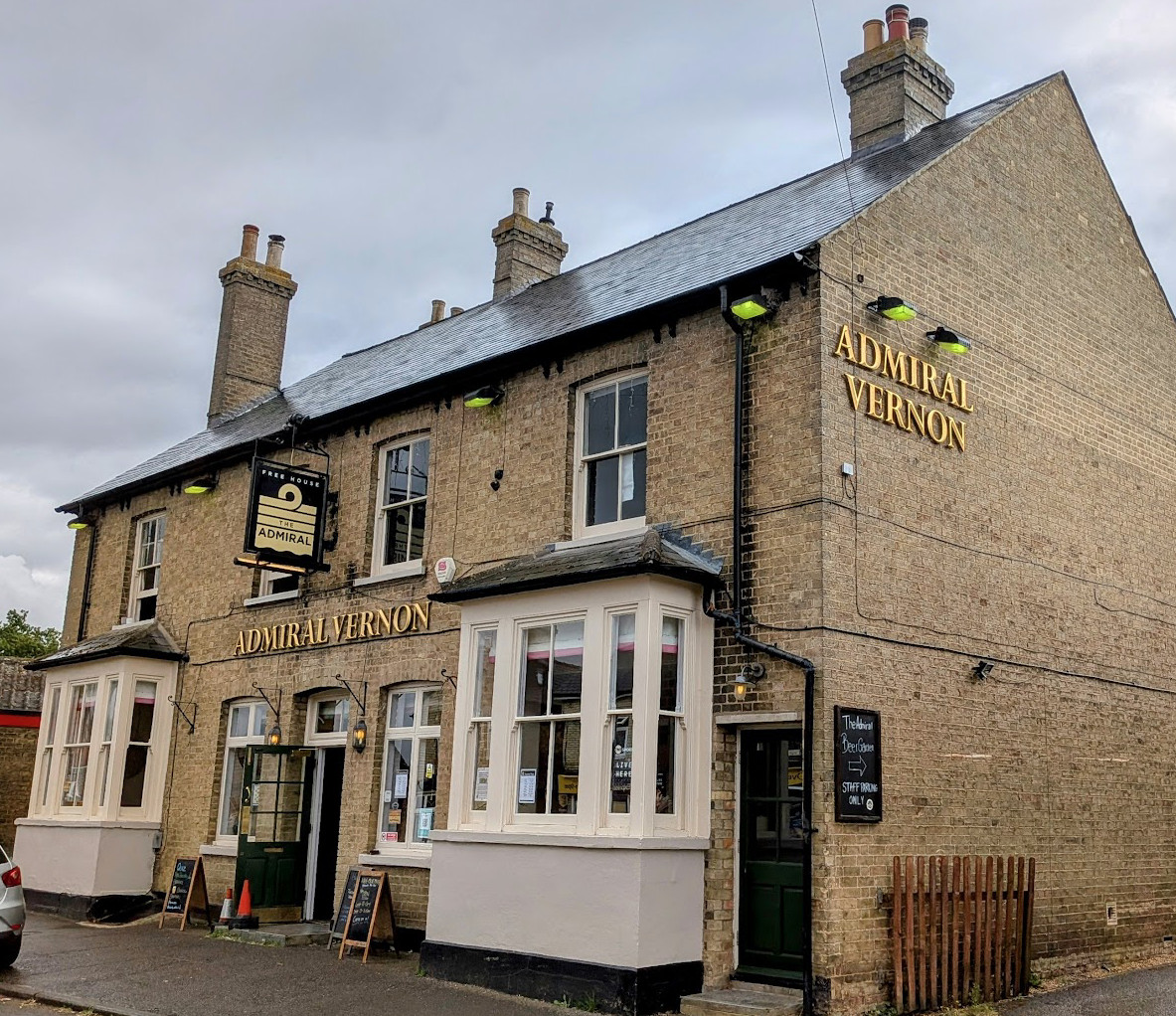 High Street, OverThe original thatched pub was probably called “The House called Keys”. Renamed The Admiral Vernon or Vernon’s Head after “Old Grog” the Admiral who watered sailors’ rum ration. At first a single-storey clay-bat building with raised dais known as the Star Chamber. Burned down in 1889; a new clubroom was opened in 1890. (A Walk Round the Village of Over by E G Papworth 1996).