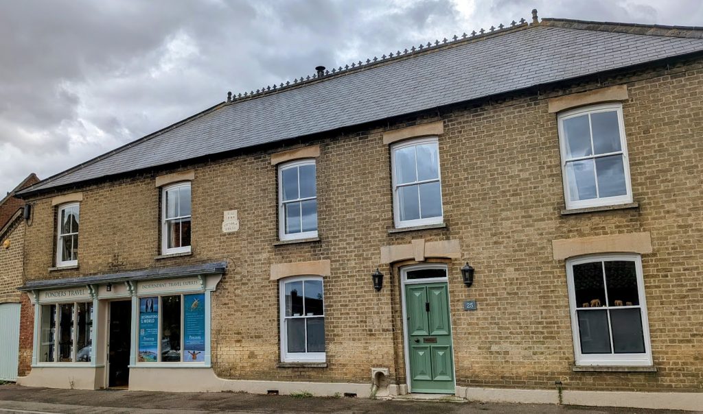 Part of Victoria House with the sign FL 1886 for Fred Lucas, for many years the home of Alan Bloom, b 1906, author and founder of Bressingham Gardens. Later Marshall’s Stores (The Bacon Shop) and Taylor’s Stores.