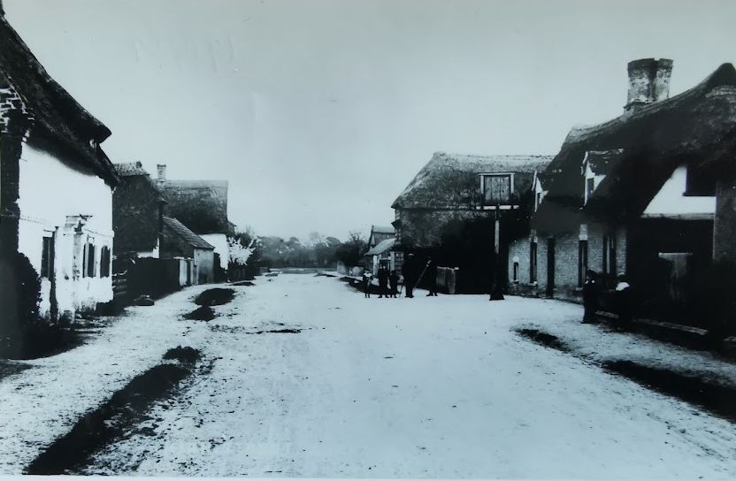 There is clearly a public house in the photo and if this is indeed Rampton, there was only one other public house, The Chequers, which opened in 1765 but closed in 1917. There appears to be no sign of The Chequers in the 21st century.