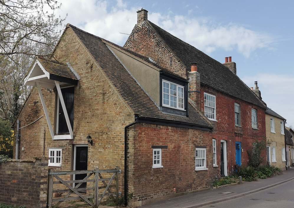House, now two dwellings. Early to mid C18. Soft red brick reddened. Old plain tile roof with shallow tumbled gable parapets and end stacks both rebuilt. Lower range to south with corrugated iron roof. Two storeys and one storey, original symmetrical facade of three ‘bays’ altered in C19 by inserted doorway to left of main entrance. C18 six-panelled door with moulded and gauged brick arch and cornice.