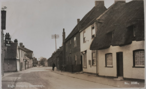 High Street in 1953. Alan Lee moved Post Office in 1951 from Market Street to High Street until 1983. Man in steet is Josie Linford who lived in thatched cottage next to Post Office.(Alan Lee Swavesey collection)
