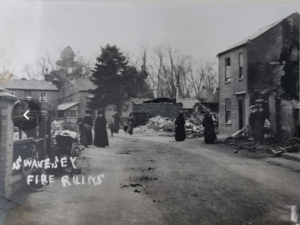 Swavesey, west end of Station Road after the 1913 fire. Thatched barn which missed fire. (Alan Lee Swavesey collection)
