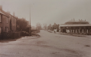Boxworth End. On right is WWI military hut bought by Jimmy Prior and converted to furniture store. Two boys are gerald and John Prior. Opposite is George Berlin’s blacksmith’s shop. (Alan Lee Swavesey collection)