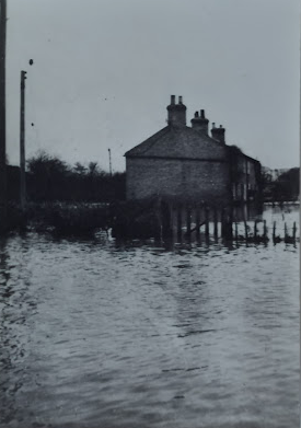 Turnbridge Cottages in 1947 floods. Later demolished and replaced with Greenside Close.(Alan Lee Swavesey collection)
