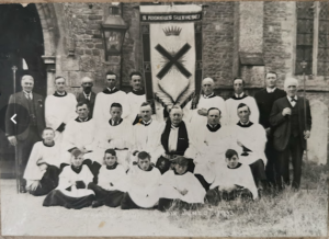 Swavesey church choir 1933. (Alan Lee Swavesey collection) Back row from left: Will Heffer church warden, Henry Key, Will Froment organ pumper, Bernard Johnson, Sam Mytham, grandfather Rob Mytham, George Scouldan, Dennis Williams clerk, Harry Wells church warden. Centre row from left, Earnest Mytham, John Mytham, George Squeals organist and choir master, Rev. Cecil Dickson, Harry prime, Arthur Heffer. Front row from left, Ted Brashier, Cyril Watson, Alan Lee, Frank Hodson, Alfred Dalton, Cyril Wagstaff.
