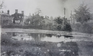 Swan Pond, SwaveseyMost of the houses shown were severely damaged in the fire of 1913.