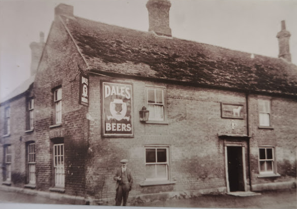 White Horse Swavesey, 1920s, with Bert Moynes outside. Sid Brookes landlord in 1930s. Bert Moynes brother was correspondent for The Times and present at opening of Tutankhamun’s tomb. He died of typhoid in England in 1930. (Alan Lee Swavesey collection)