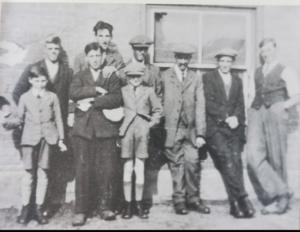 Swavesey, outside White Horse, c 1930s. Back (L-R): Stan Prime, Stan Brooks, Alby Ding, Wilf Froment, Harry Brooks, Joe Froment; Front: Dudley Nightingale, Joe Sutton, Vic Wilderspin (Alan Lee Swavesey collection)