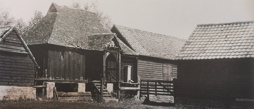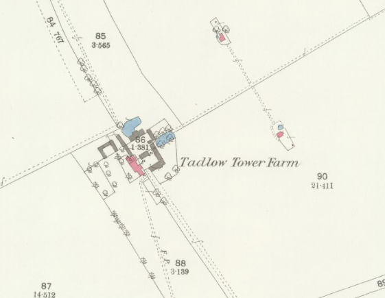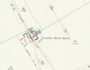 Tower Farm, Tadlow, 1930 (photo J H Bullock) (Cambridgeshire Collection)The granary at this site moved was moved to Wandlebury in the 1960s. W Clark, Once around Wandlebury, 1985, noted: Originally built circa 1415, the granary had been pat of a group of farm buildings at Tadlow Towers, Royston. In 1967 permission was requested to demolish the granary. As there was only one other building of its type known in the Britain, it was decided to preserve it. So it was transported to Wandlebury for safe keeping.