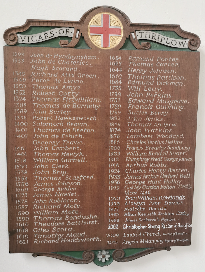 There is guide to Thriplow church written by G O Vinter in 1951, revised and updated in March 2018 which contains an overview of the early history of the village as well as of the church.
