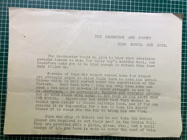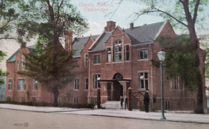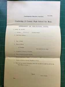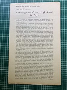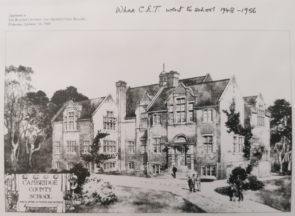 Cambridge County High School For Boys circa 1900Pevsner’s Cambridgeshire notes that the original building was by MacAlister & Tench, neo-Tudor brick, in 1903. Additions were made in 1924 and 1928 by H H Dunn, and in 1935 by S E Unwin.