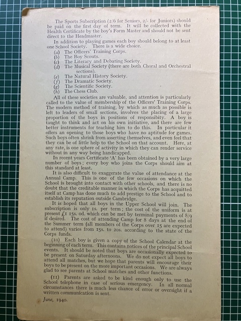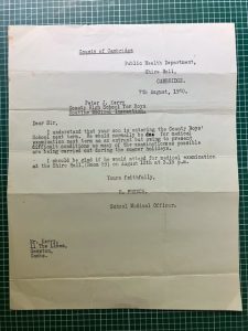 The Cambridge & County School for Boys, which during the past four years has been very insufficiently accommodated at St Columba’s Hall, reached an important stage in its career. The builders were displaced by the boys at the new school house that has been erected upon Hills Road and henceforth the scholars will participate in the manifold advantages that the most approved educational equipment, utilised amidst ideal surroundings, can supply. Few buildings can possess such a curious means of access. The boys are to make their entrances by means of a slope leading into the basement where they can leave their bicycles, hats and coats before climbing a broad staircase to the ground floor.