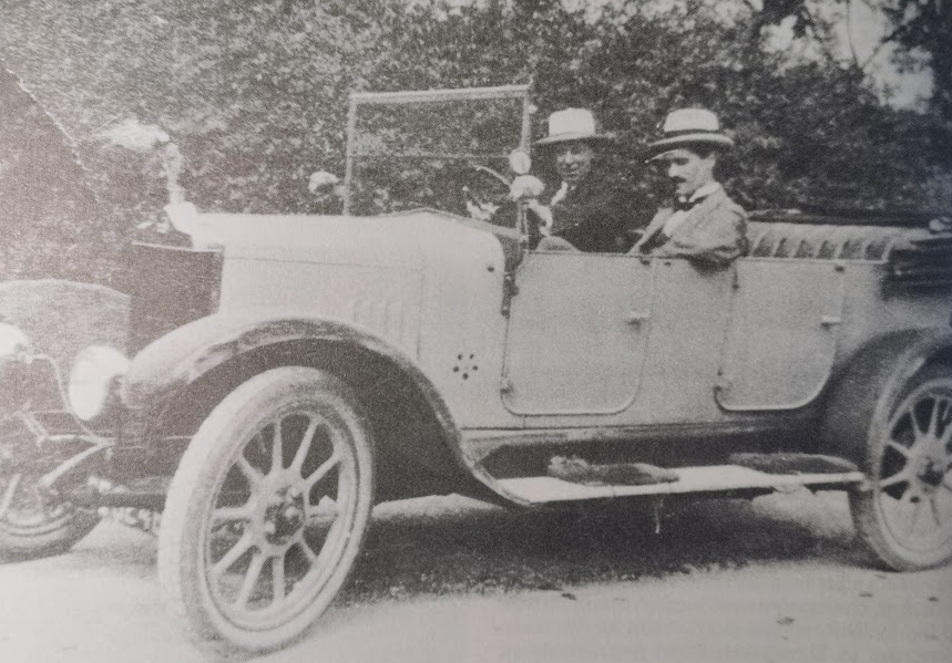 Charles Kerridge Jnr in his Daimler with architect Mr Keefer who designed the house at Lordship Close, Stapleford