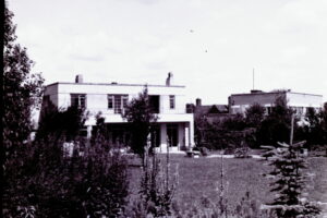 2 Kneighton Brae c1943According to MB (2023) his parents Egon and Hanni Bretscher lived at no. 2 Kneighton Brae and owned the road. They had bought it around 1939 with the intention of retiring there. After WWII Otto and Ursula Frisch rented it. In 1960 Otto Frisch bought a house in Wort’s Causeway (no.22) and no.2 was rented by Malcolm Clarke (of Caius). A few years later Malcolm Clarke moved to Warwick Univ. and the local authority decided that the site was needed for the new Addenbrookes ambulance station. It was served a compulsory purchase order and demolished in 1965; no.1 was probably demolished about the same time.