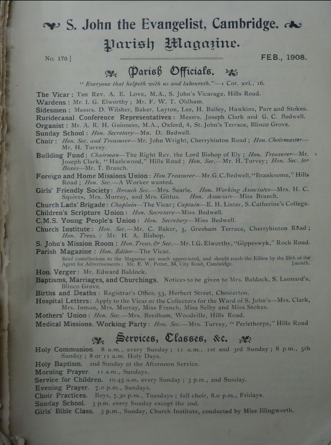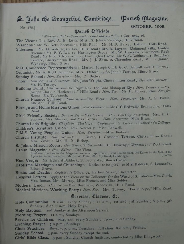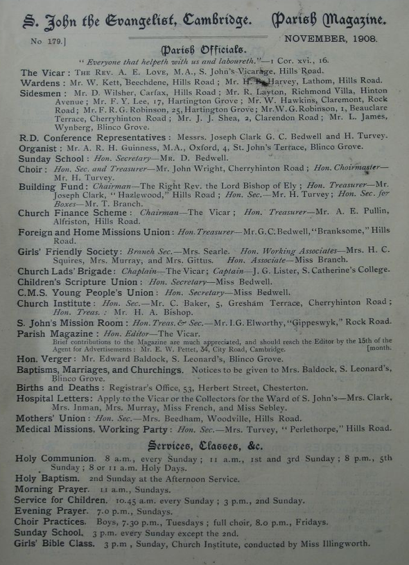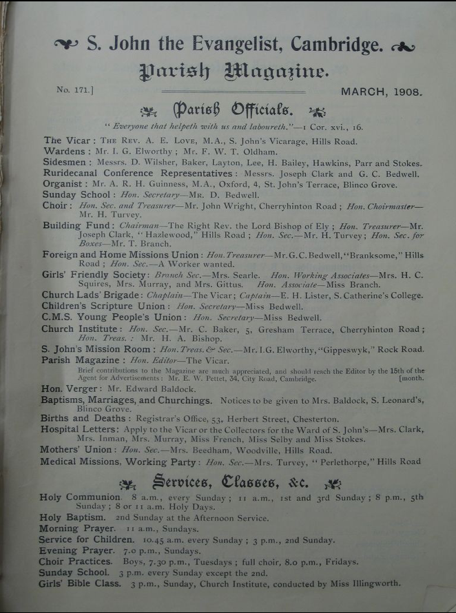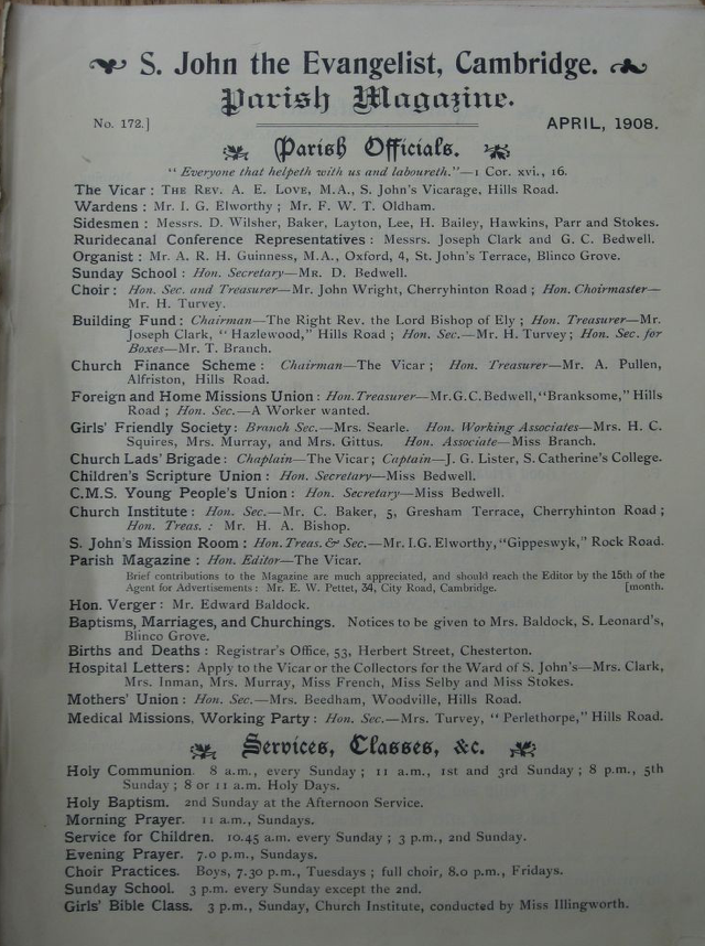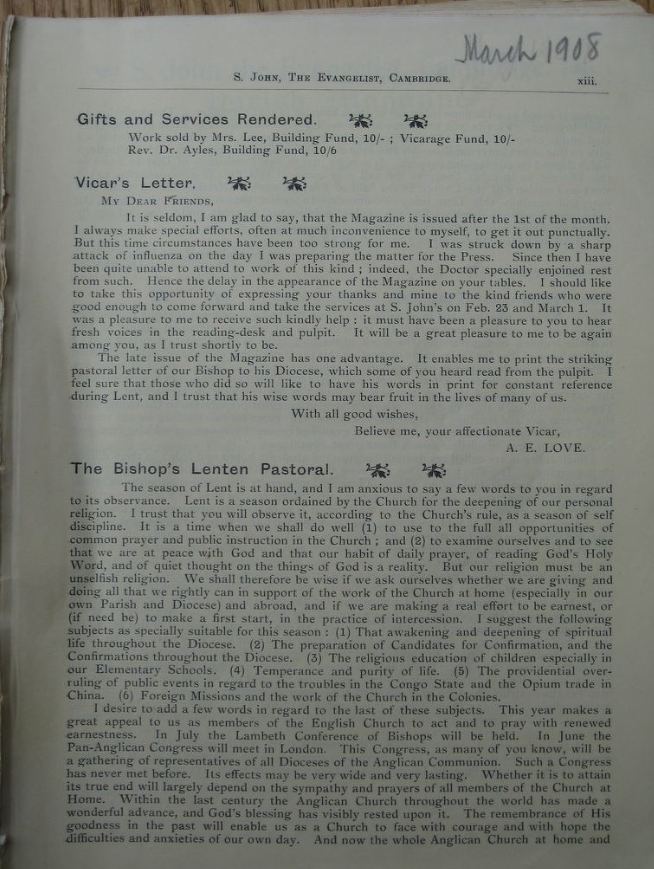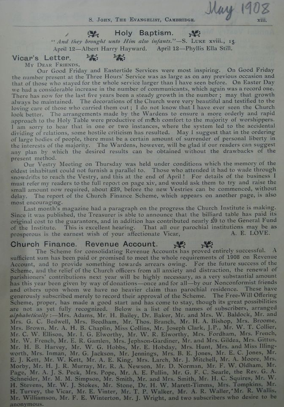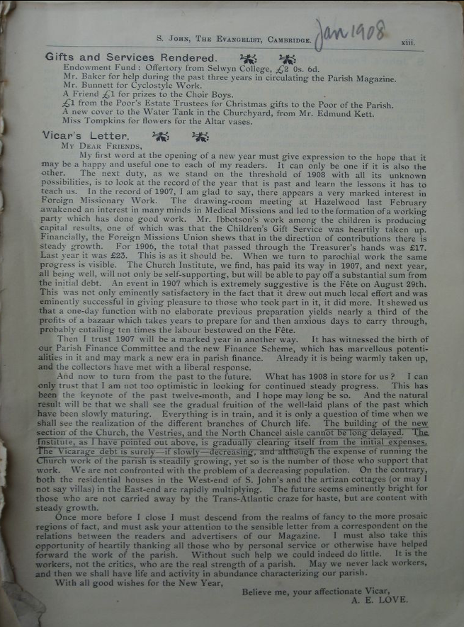 St John the Evangelist – Parish Magazine Archive 1908