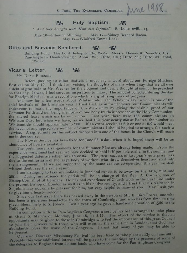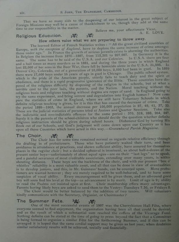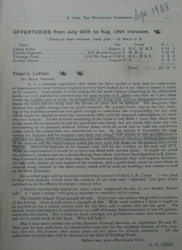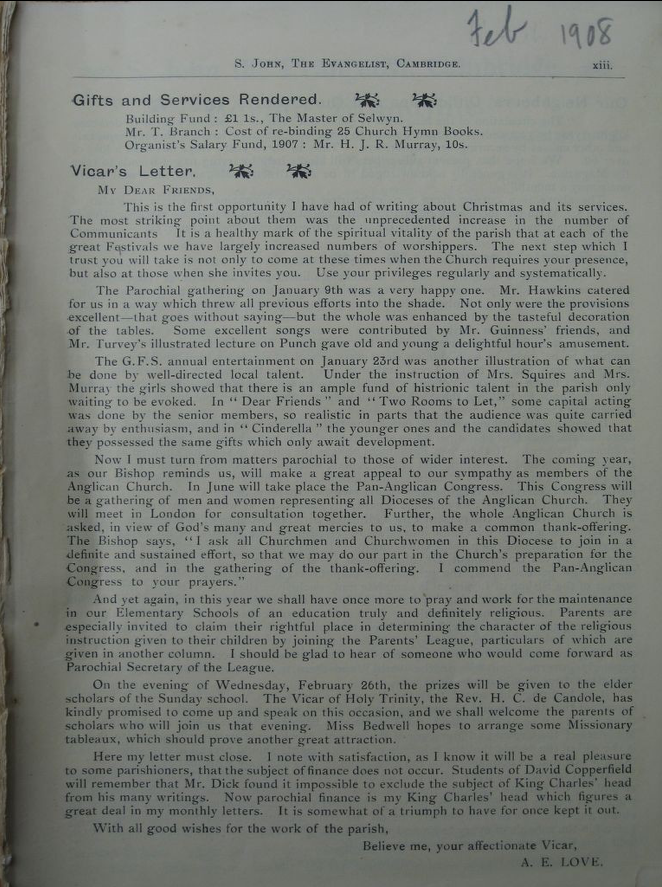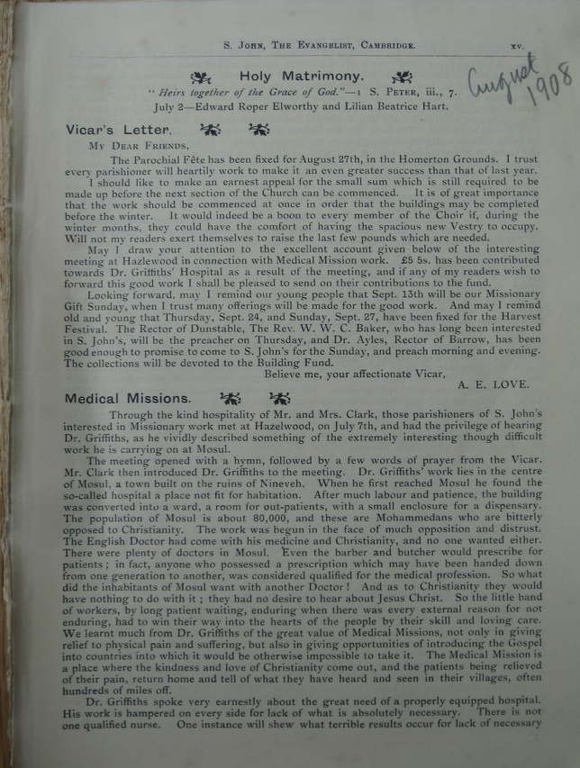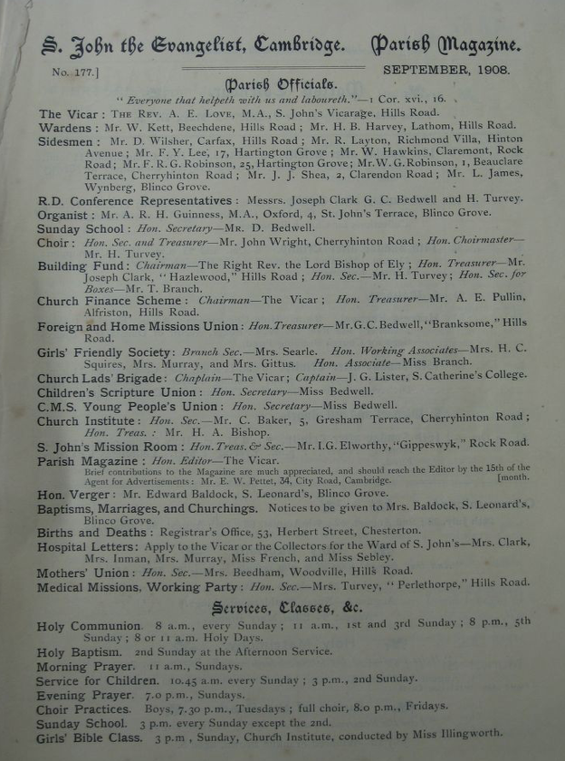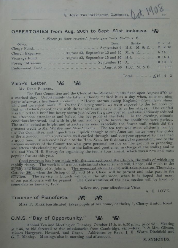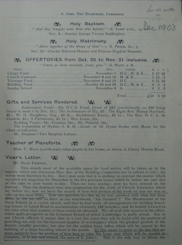 St John the Evangelist – Parish Magazine Archive 1908
