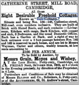 In the 1891 census there are a lot of houses in Catharine Street but all are unnumbered. No. 148 , John Merryweather’s house, which can be identified in 1901 by number, existed. It would have been at the far north east end of the street at the time. But it is not shown on the 1886 map.