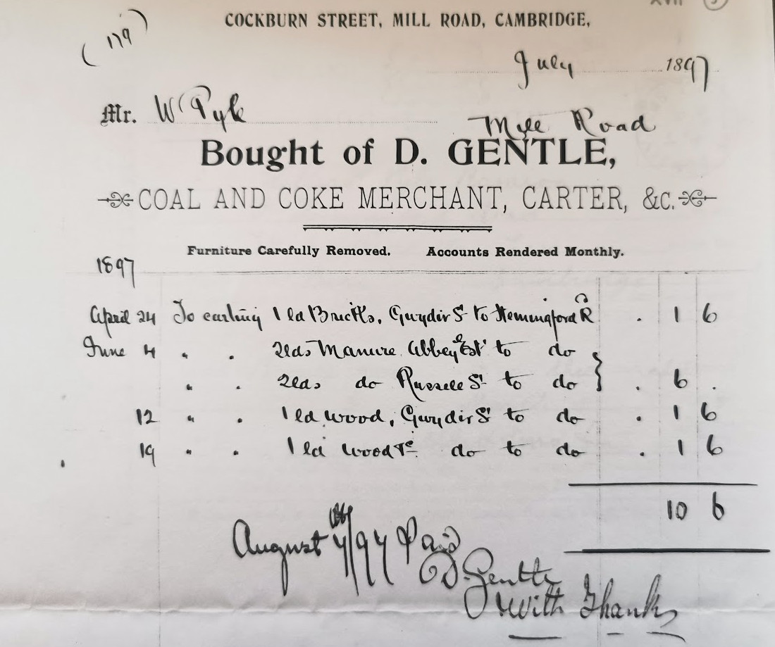 In 1881, the Gentle family were living in Trumpington on the London Road, location unknown.