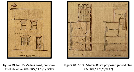 No. 35: application in December 1911 by A. Marriott, 342 Mill Road, on behalf of Mrs B. T. Waits, 28 Mill Road, to erect a cottage. The house was occupied by John Frederick Ellis, carpenter, and presumably family, from 1912 to the late 1940s.