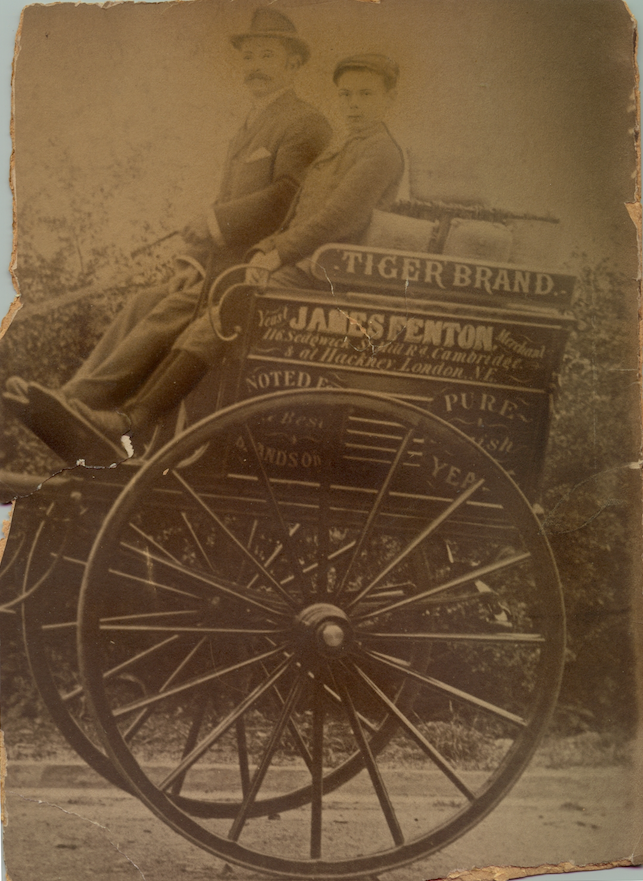 c 1890 James Frederick Fenton on trap with nephew Sydney George Ward