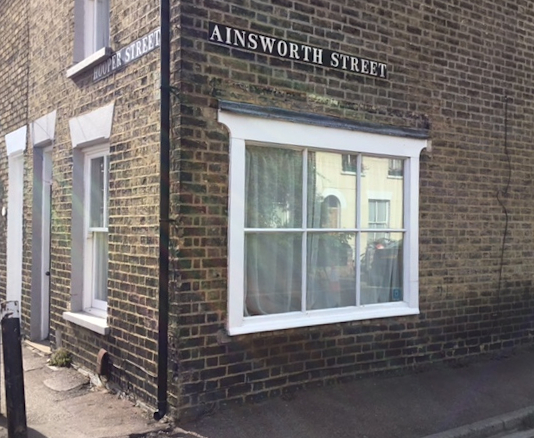 The large window at 22 Hooper Street facing Ainsworth Street may have been installed for Sarah’s shop. The house was built as a dwelling house in the 1870s by Thomas Holder, who lived along the street at no. 14. After his widow’s death in 1900 the entire terrace was sold. Land Registry documents from 1910 indicate that the freehold was bought up by Mrs E. Smith and Miss Sarah Scarr. Mrs E. Smith was Sarah’s niece Eleanor, who in 1906 married Sidney James Smith, son of Abram Smith who founded the bakery at 80 Kingston Street, another corner shop with dual-aspect windows.
