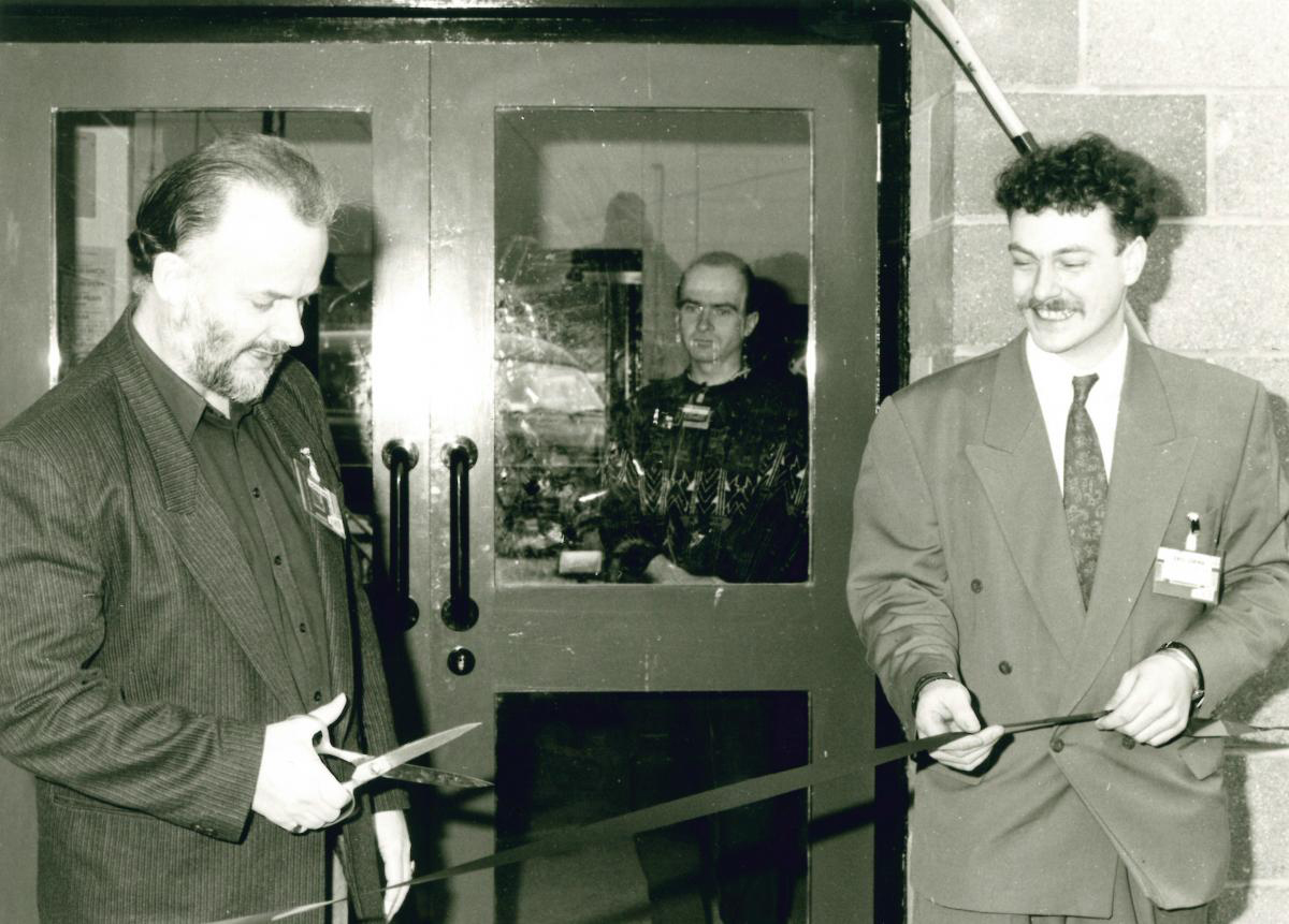 Eric: ‘I worked full time for 3 years to make it happen so 14th February 1990 was proud day for me. That is me in the picture, cutting the tape with John Peel. Incidentally, John told we it was the first time he had ever been invited to open anything!’
