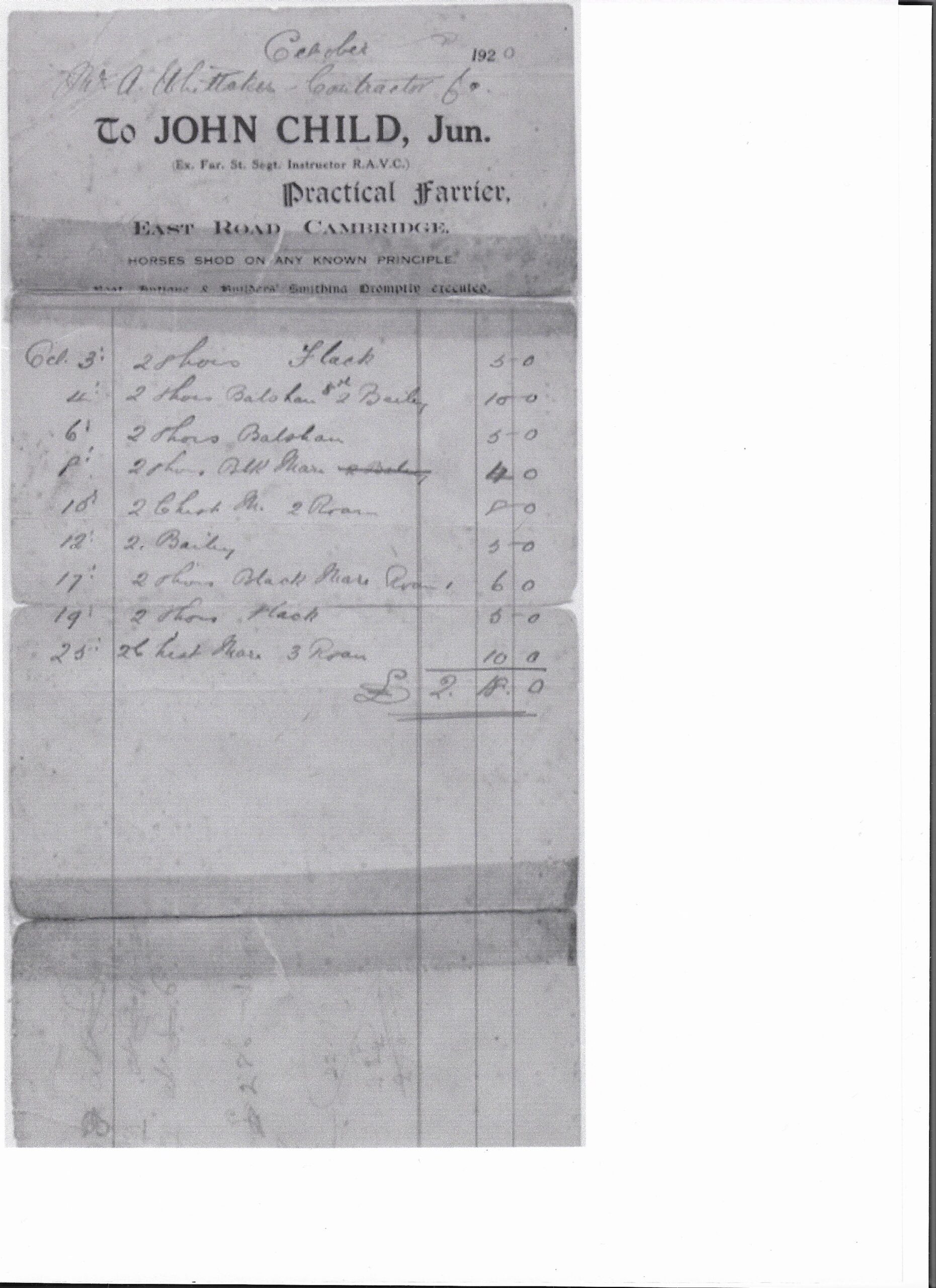 By 1920 the farrier business had been taken over by John Child Junior, son of farrier John Child of Northampton Street