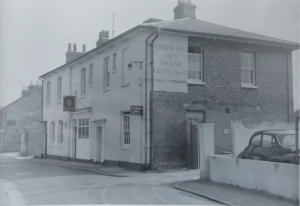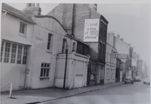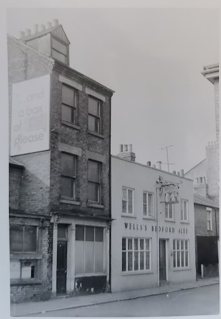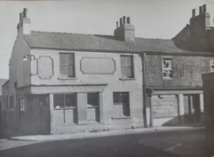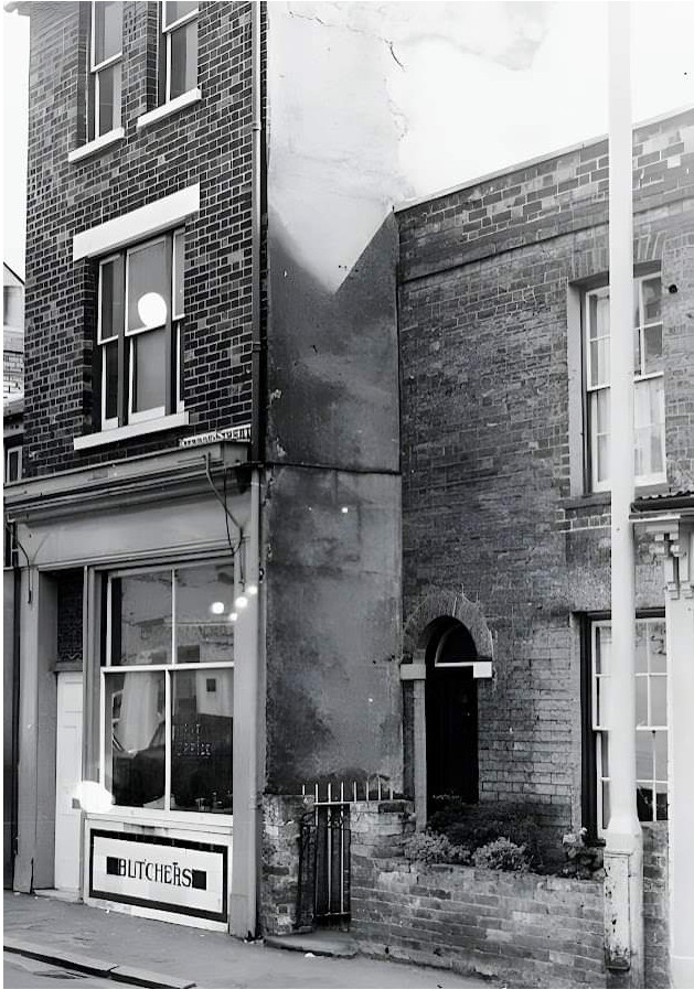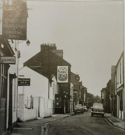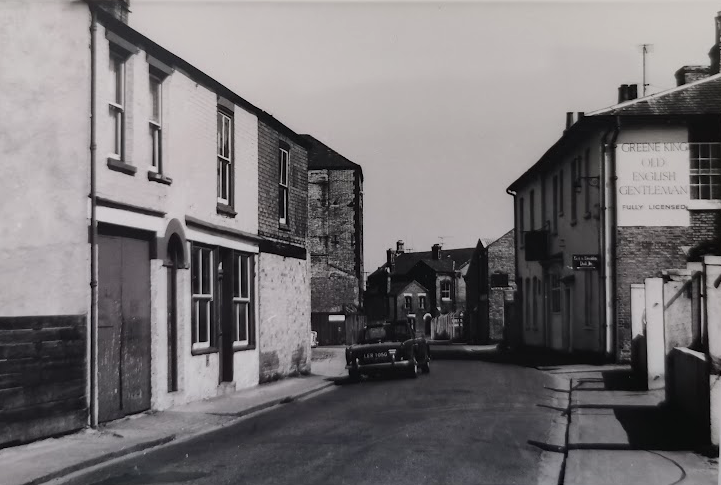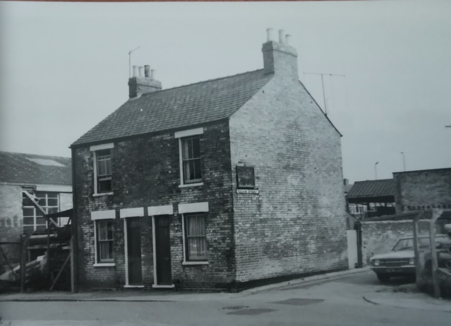 In July 1974 these were the only two houses left standing between East Road Corner and the Old English Gentleman which were still inhabited. The house was next to Nelson Street and the black notice board above the street sign reads in faint gold lettering: