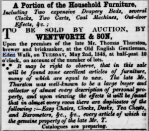 Before circa 1850 Fitzroy Street was divided between two street names, Eden Walk, and Blucher Row. It is not clear which parts of Fitzroy Street fell under the former names, but in 1848 the Old English Gentleman (later no.47 Fitzroy Street) was still listed as being in Eden Walk.