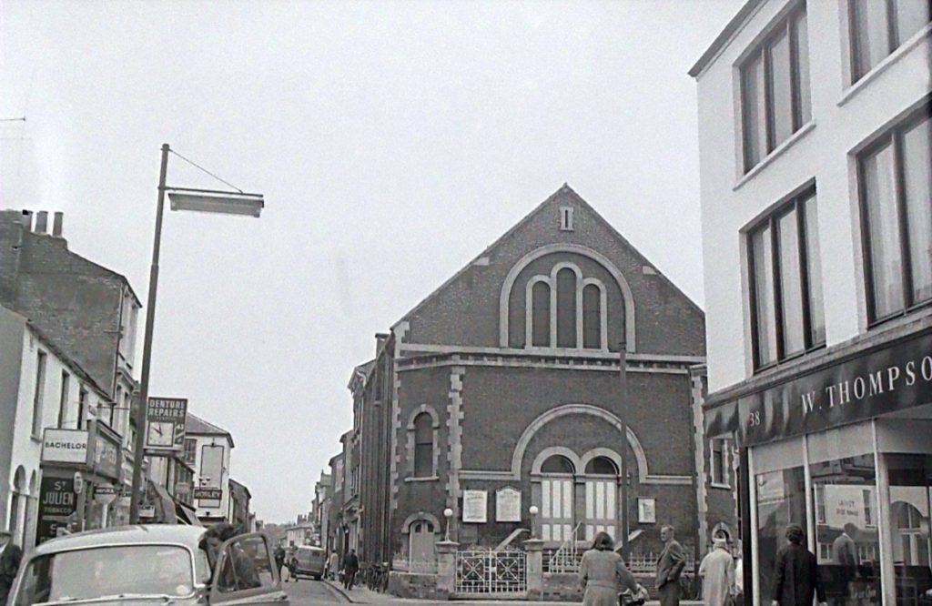 Eden Chapel and Thompson's at junction of Fitzroy and Burleigh Streets 1964