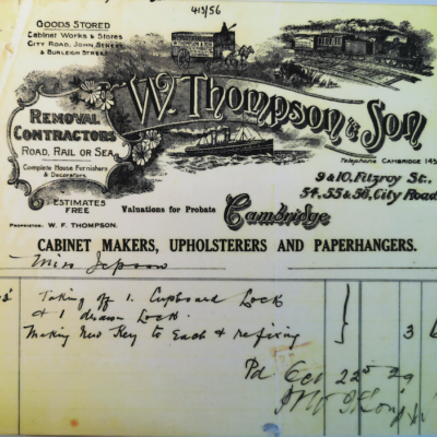 The Vicar of St Andrew the Less had befriended William and arranged for him to take over 104 Fitzroy Street as a shop. The first few years were difficult but William’s work as a temperance campaigner and his work in Sunday School would have brought more clients. He also became a bulldog, a University policeman, walking the streets to ensure the University regulations were kept.
