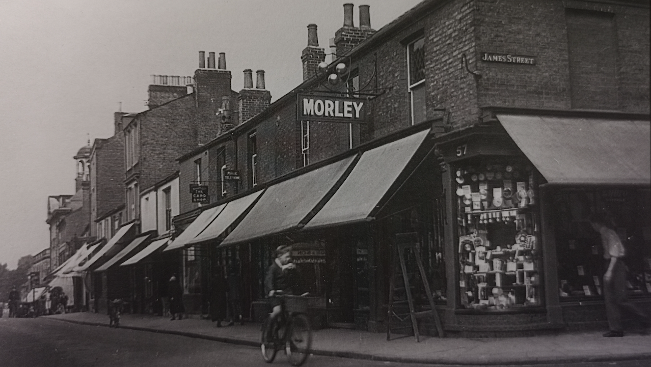 47 – 57 Fitzroy Street, corner of Fitzroy and James Street, 1939 (photo L Cobbett) (Cambridgeshire Collection)