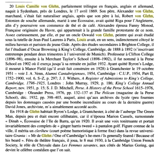 Louis Camille von Glehn, assistant master Perse School and director of Modern Languages Queen’s College